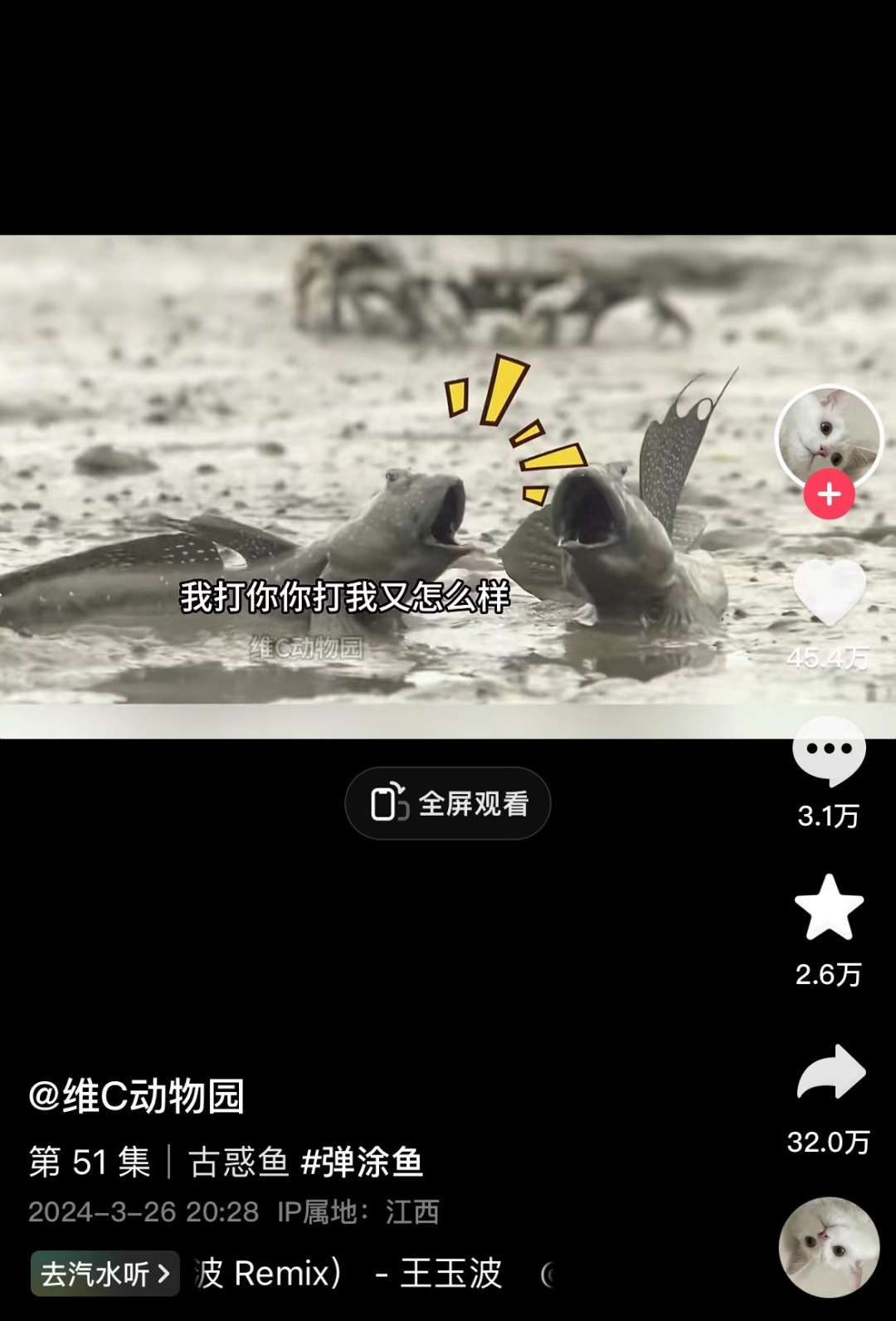 一代人有一代人的《动物世界》。在抖音,@维C动物园 等新一代动物“解说员”,用“央视的声音,老六的嘴”把动物纪录片变成了整活小剧场,精挑细选的画面配上恰到好处的BGM,一句一个梗,三句大反转,五句下来废话含量超标,但网友竟然看得很上头。
