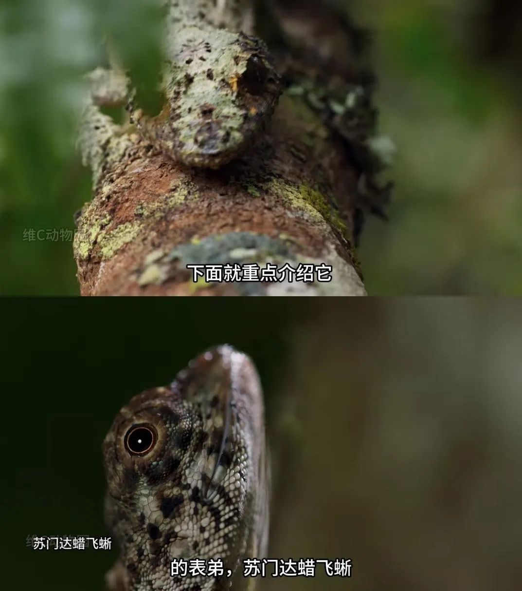 《飞起来!》这个视频里,维C先给飞鱼来了一个超燃开场,然而“海阔凭鱼跃,天高任鸟吃”,那就来看看飞鱼的“表哥”叶尾壁虎,身形就像一片树皮的丛林伪装大师,就在大家以为真正的主角登场时,他又出其不意地表示:下面重点介绍的是它的“表弟”苏门达蜡飞蜥。