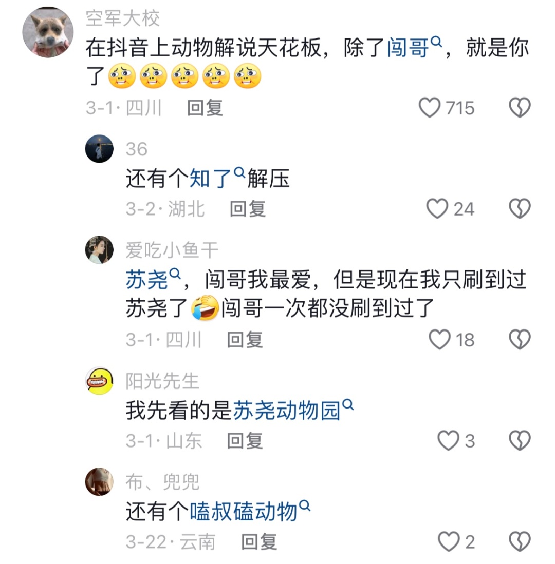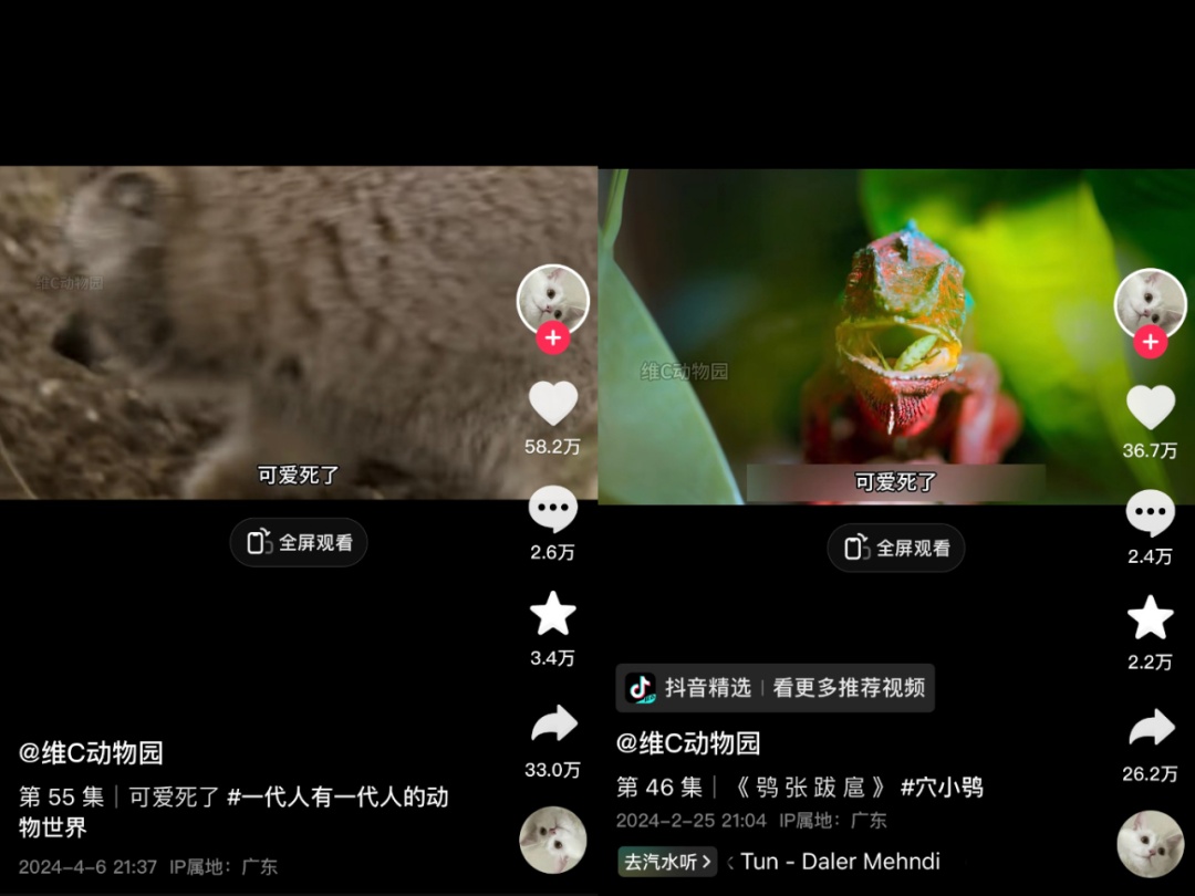 在抖音,像@维C动物园 这样的新一代动物“解说员”,还有不少。