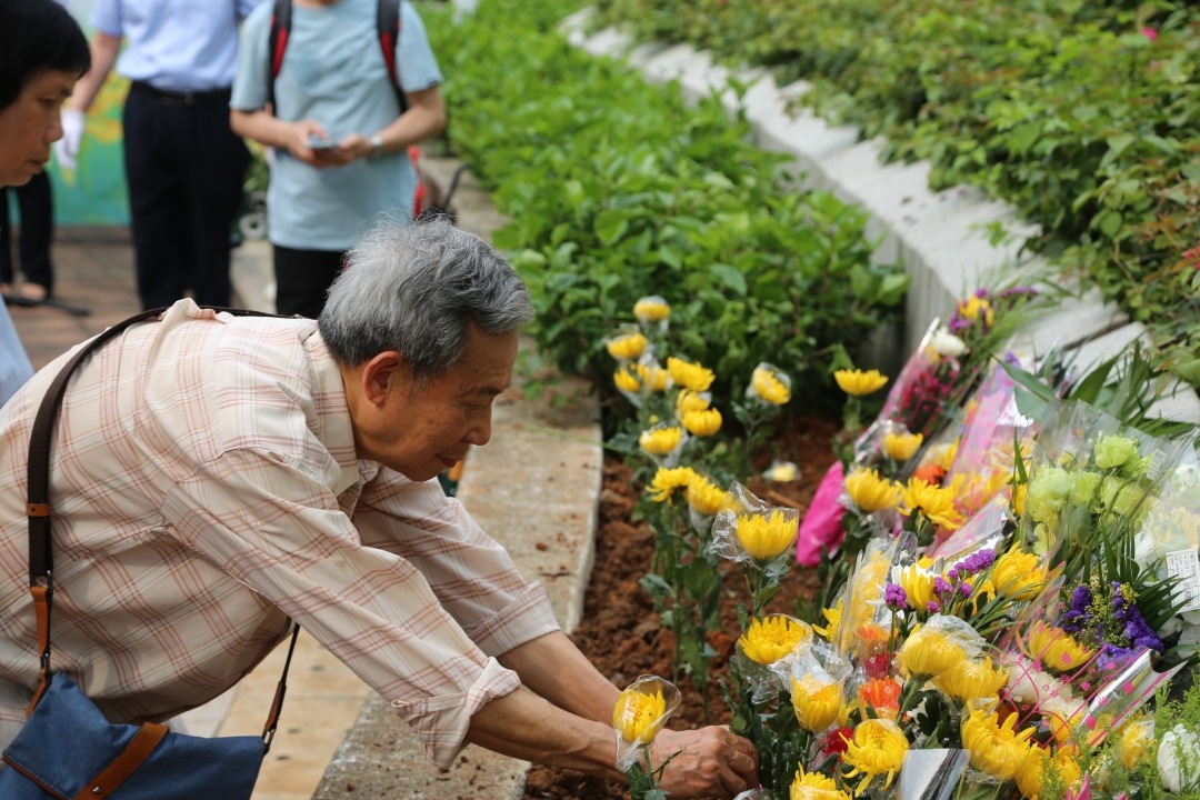 活动当天还举行了生态葬区集中祭扫仪式,通过宣读祭文、行鞠躬礼、敬献鲜花等形式开展祭扫活动。年过八旬的杜奶奶和她的儿子参加了祭扫活动,“我的丈夫去年4月在这里花坛葬,今天我们来这里祭奠他。”杜奶奶说着说着哽咽起来,“虽然我很悲伤,但是这样的祭扫方式也让我很感动。比起个人凭吊,这种祭扫仪式会更温暖、更正式,安排得也很温馨。”