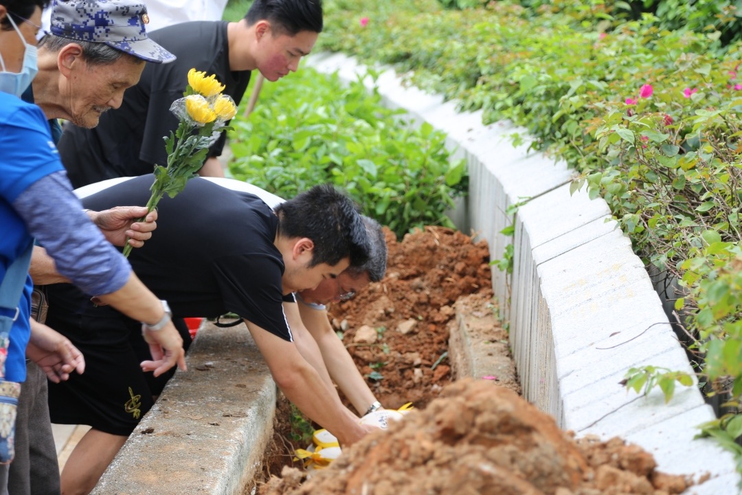 4月13日,广州市银河革命公墓在生态葬区举行2024年花坛葬安放暨集中祭扫仪式。20位逝者在亲人的送别下回归自然。