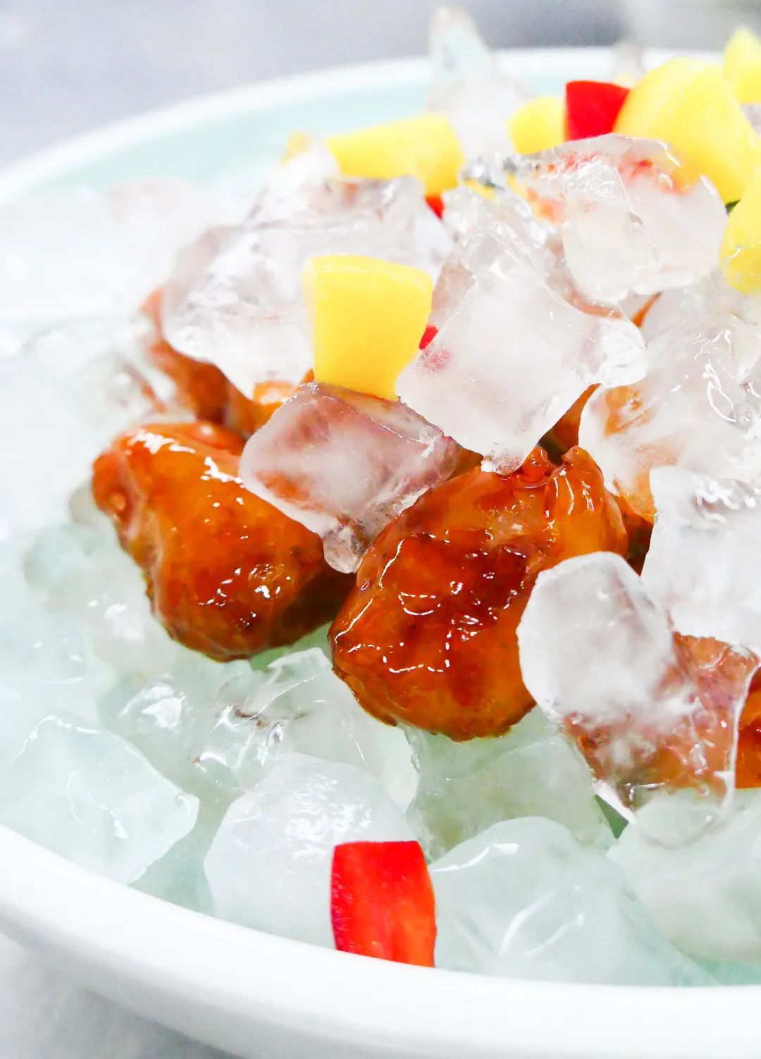 粤菜历来有“有传统,无正宗”的说法。陶陶居冰镇咕噜肉在卖相上提升档次,在口感上丰富层次,带给食客新鲜的体验感。火热的咕噜肉和冰块相遇,口感是出乎意料之外的脆。在冰块里,橙红色的咕噜肉若隐若现,为这道平民美食增添了几分仙气。更巧妙的是冰盘的设计,镂空的冰盘让融化的冰水能自然滴落到底层。因此,虽然咕噜肉藏身于冰块中,但丝毫不会被融化的冰水影响,从头吃到尾都能保持冰且脆的口感。