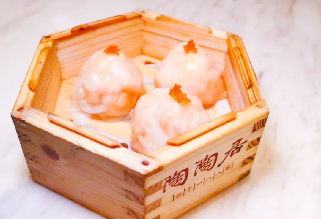 传统虾饺外形精巧,多为30g~40g一只,方便食客一啖一只。陶陶居的虾饺以皮薄馅多闻名,每只虾饺里都有3只青虾仁,分量更是重达50g~55g一只。13折的包法让虾饺肚更饱满,能容纳饱满的虾饺馅。