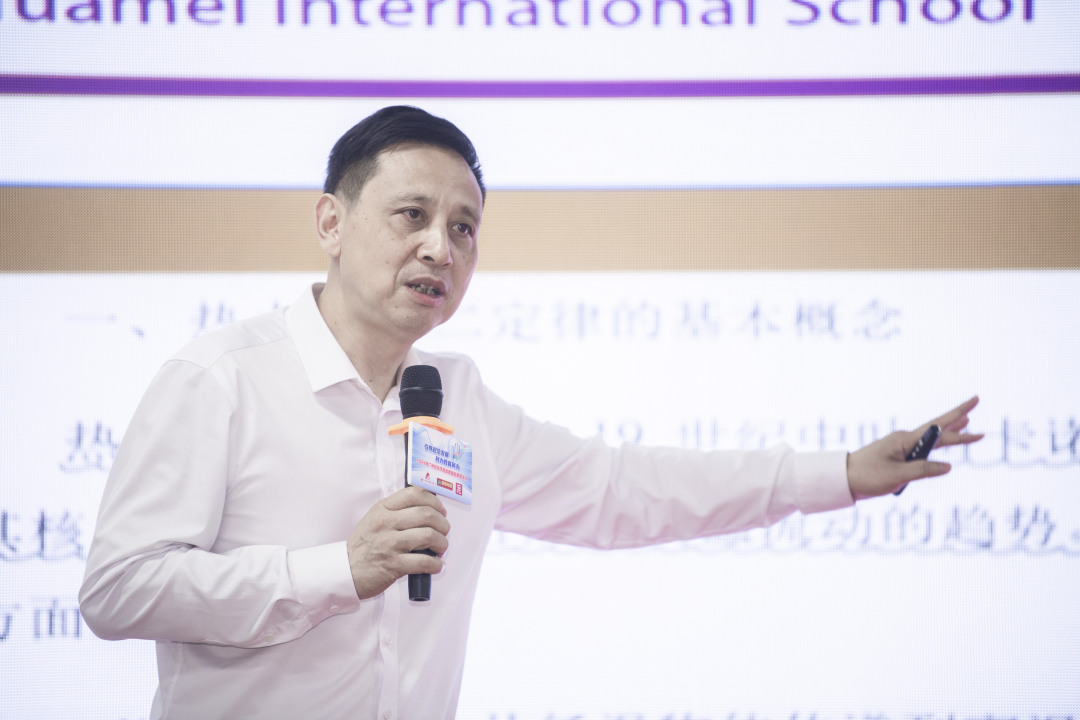 在主题发言环节,6位教育专家进行演讲,为广州民办教育建言献策。广州民办教育协会会长、广州市华美英语实验学校总校长陈峰将学校比作山、水、人,强调了学校教育的多元性和复杂性。