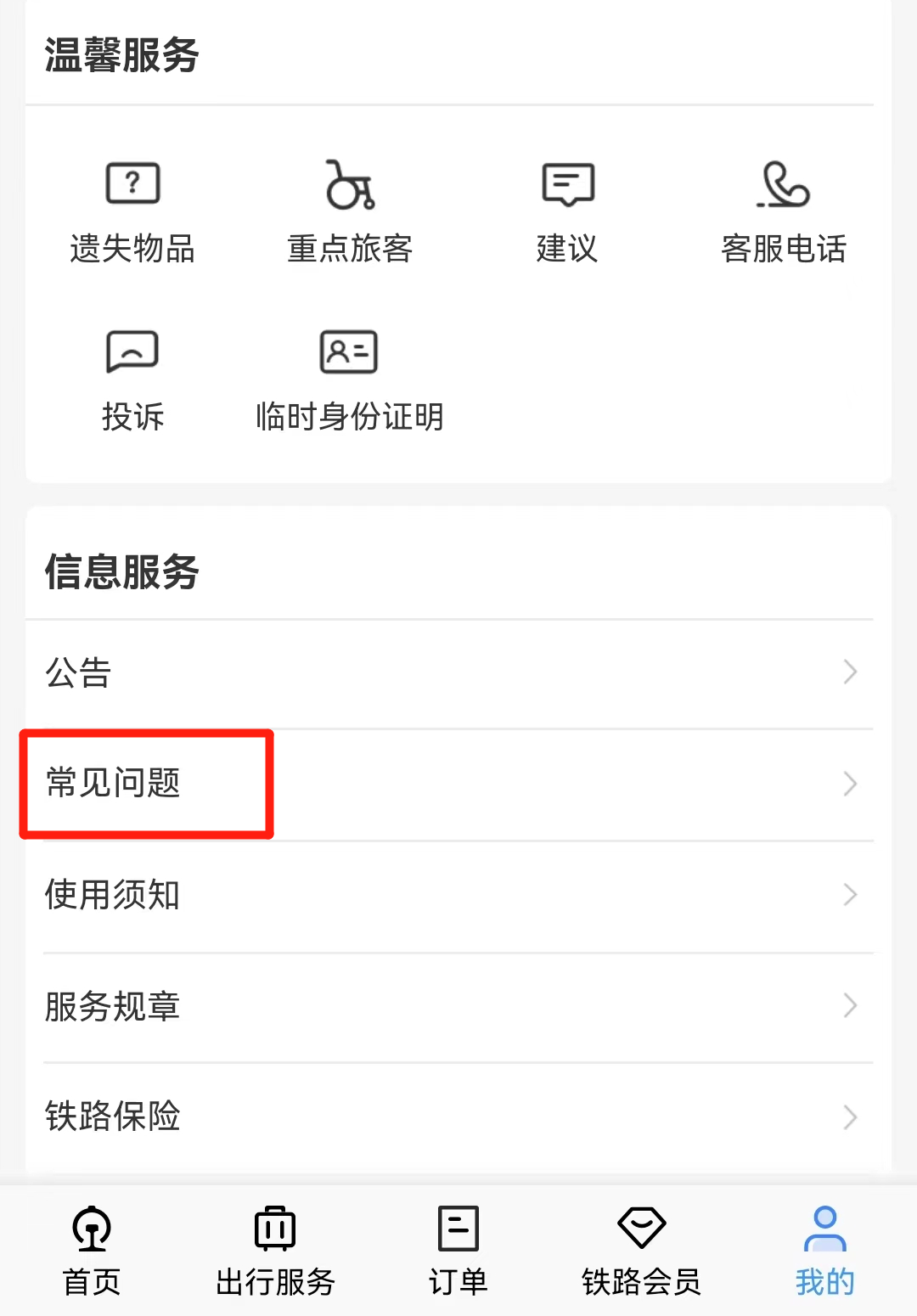 “铁路12306”APP中