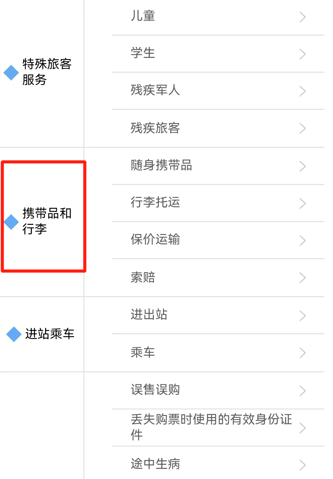 想要查询携带品和行李的