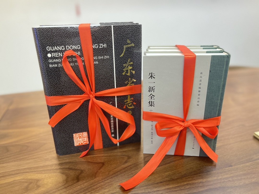 值得一提的是,捐赠图书中包括由中共义乌市委党史研究室(市地方志编纂室)捐赠的5套《朱一新全集》。宋曼蕾介绍,朱一新是清代学者,也是广雅书院的第二任山长,是浙江义乌毛店镇朱店人。其著作《无邪堂答问》,至今仍是广雅教育史上的瑰宝。