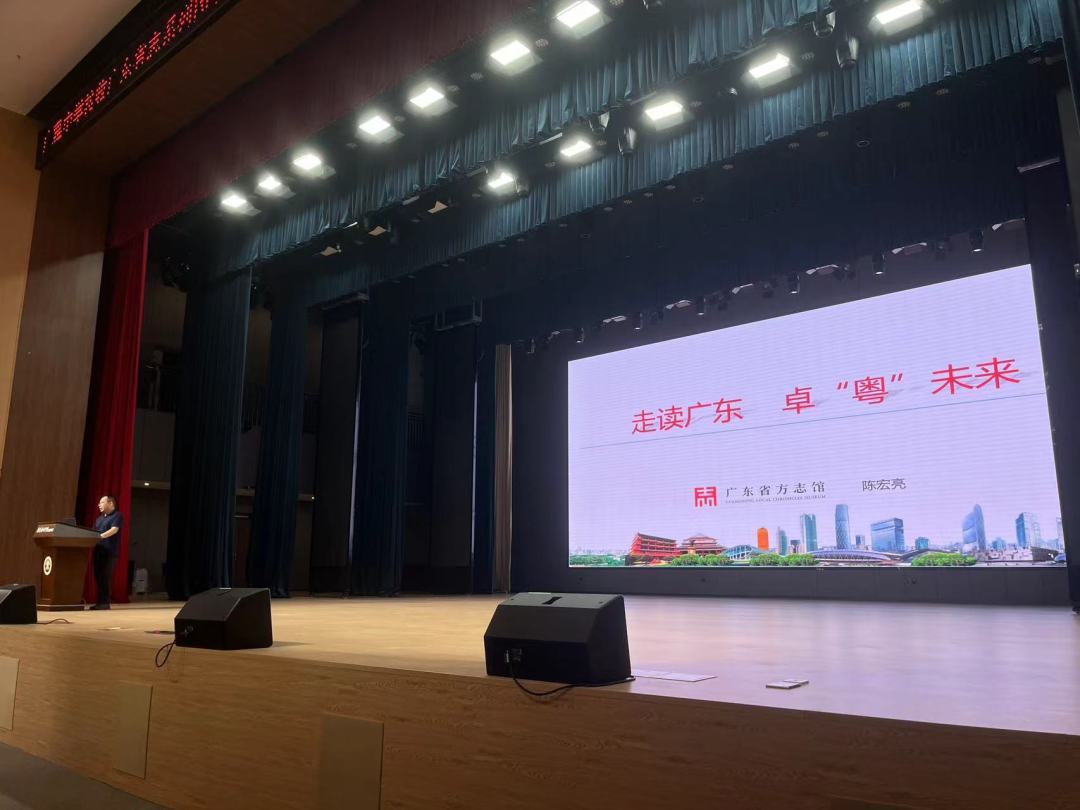 活动中,广东省方志馆馆长陈宏亮为广雅约500名高一学生带来讲座,与同学们面对面探讨、交流、分享如何通过地方志了解广东省情。