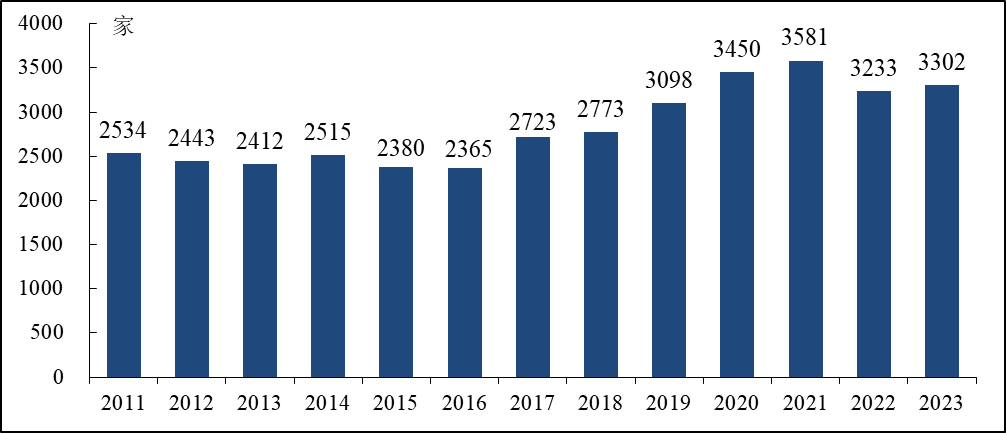 近两年,行业用人规模有所缩小,2023年记录在职的从业人员为34819人,同比2022年减少2638人。