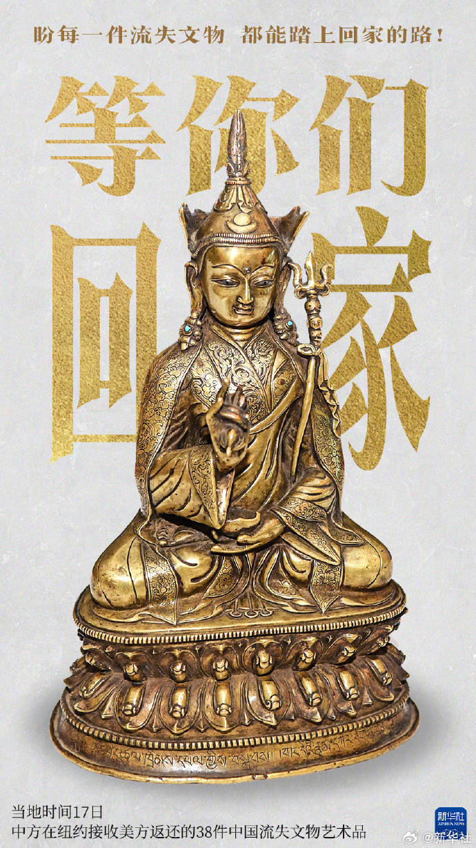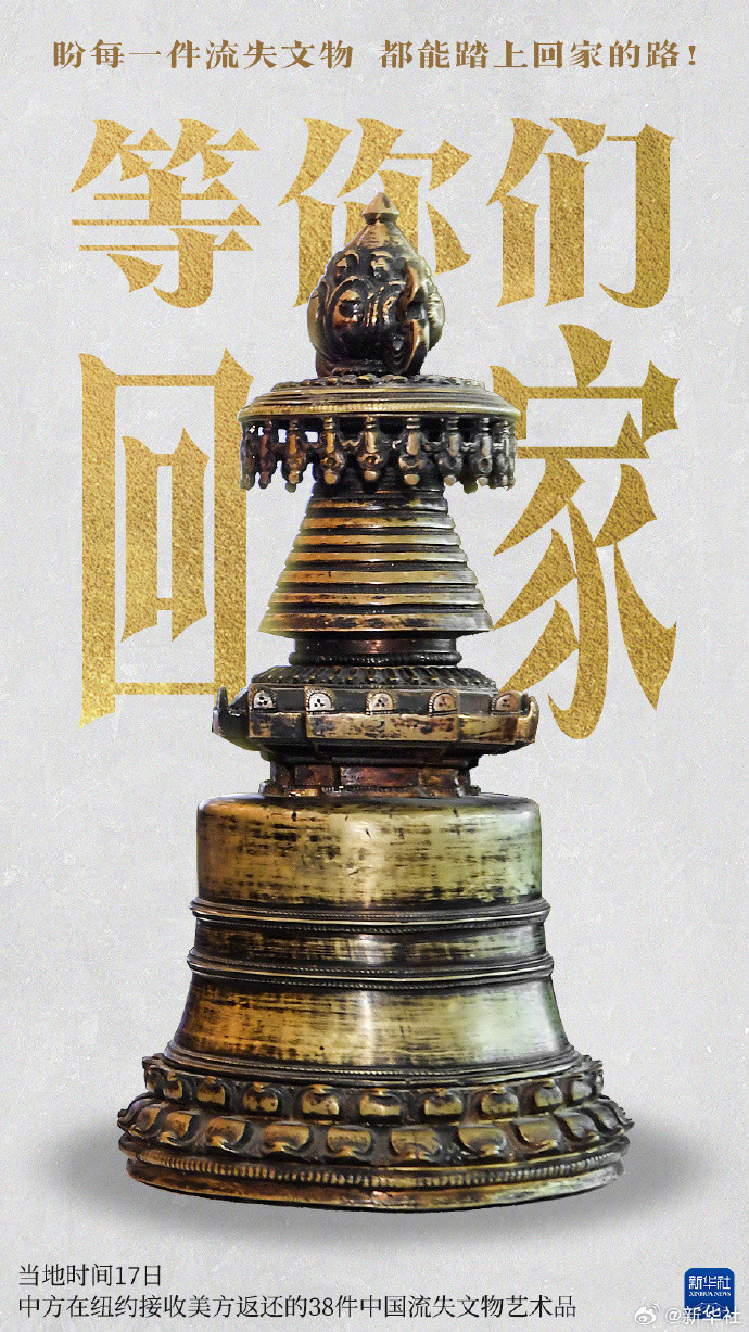 新华社北京4月18日电(记者曹嘉玥、袁睿)当地时间4月17日,中方在中国驻纽约总领馆接收了美方返还的38件文物艺术品。外交部发言人林剑18日在例行记者会上应询介绍有关情况。