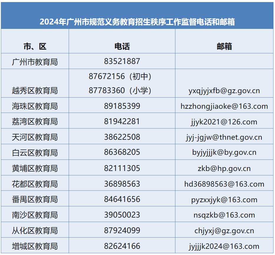 学生、家长如要获取招生信息,可通过广州市教育局官方网站(http://jyj.gz.gov.cn/)和微信公众号(广州教育)及各区政府网站和教育部门官方公众号获悉,切勿轻信微信、微博、抖音、小红书等各平台上的升学自媒体、培训机构、咨询公司等发布的中小学招生入学信息,以免误听误信造成经济损失,影响孩子正常入学升学。