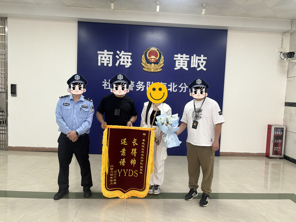 3月30日下午,林女士(化名)面色焦急地来到黄岐派出所社区警务队海北分队前台求助,“警察同志,我今天早上从商场回家就发现手机不见了,沿路回去也没找到,能不能帮帮我?”接报后,民警一边安慰林女士不要着急,一边迅速安排警力进行调查。经过排查发现林女士的手机疑似在商场入口处被一女子捡走,民警立即前往寻找,最终用时不到3小时便成功找到捡拾者,成功将手机交回林女士。