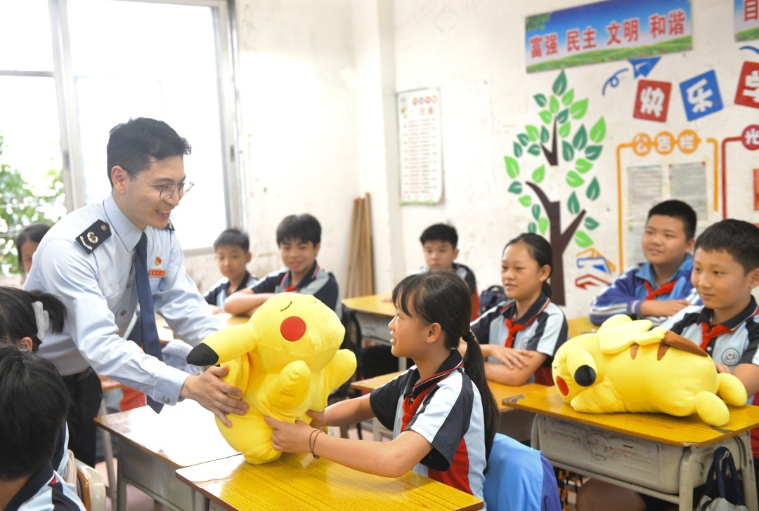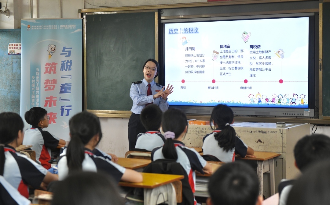 在从化区鳌头镇同心小学的“税收知识润童心”主题班会课上,一次又一次举手,一个又一个疑问,让这堂税收宣传课妙趣横生、笑声不断。