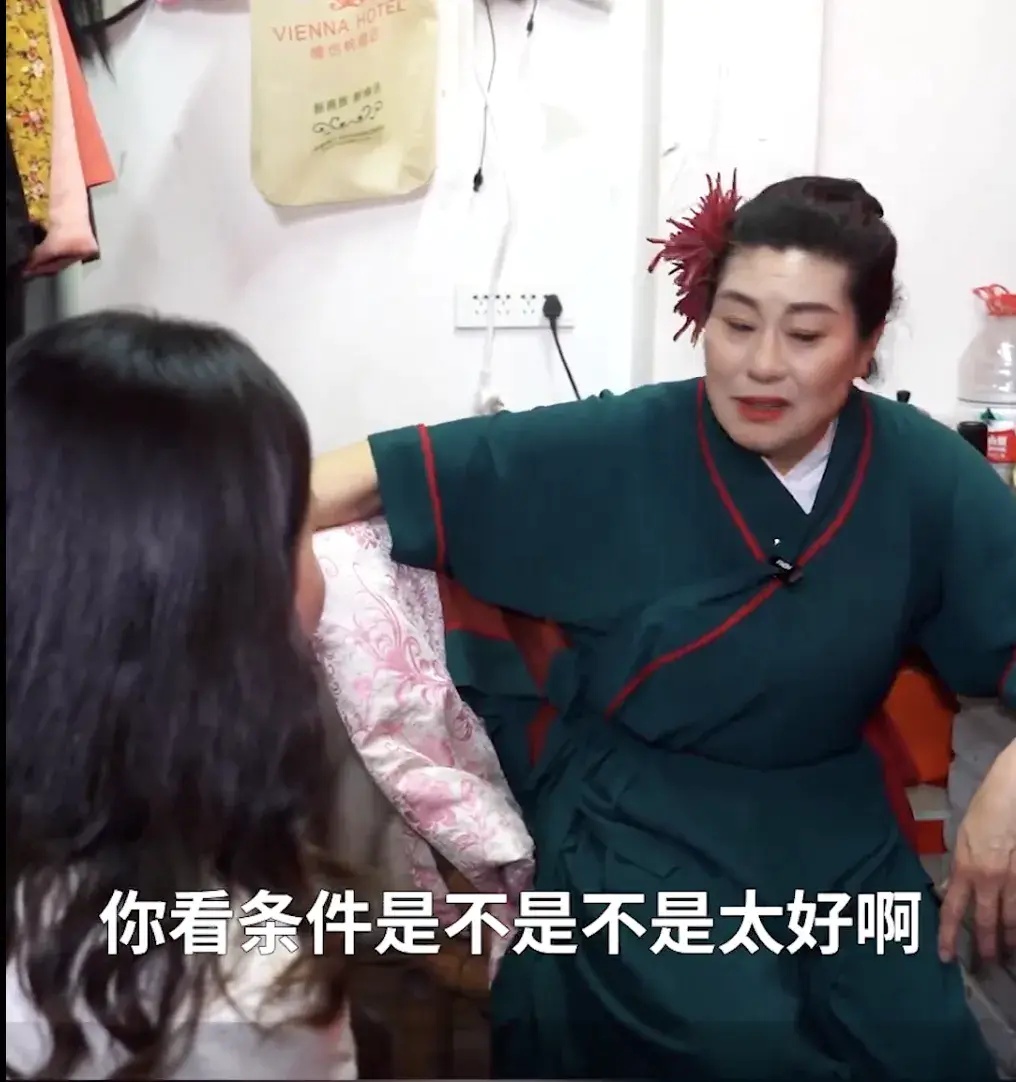 在另一段采访中,王婆赵梅说,6年来自己都和其他演员共用一个小小的化妆间。走红后,她也拒绝了更换新的化妆间:“我没那么多讲究,工作哪是来享受的。”