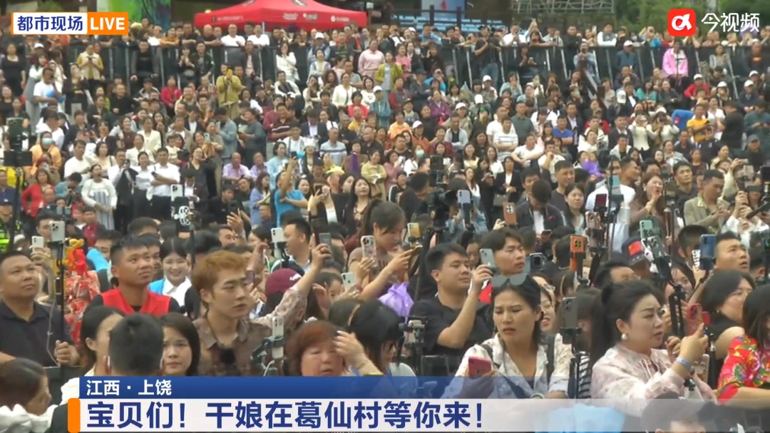 4月17日下午2点,“开封王婆”赵梅现身江西上饶葛仙村摆擂台相亲,现场依旧人气爆棚。