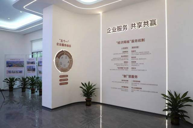 同时,企业服务中心设置了休闲洽谈区、企业家茶室以及会议室等功能室,旨在为企业提供轻松休闲的商务空间。