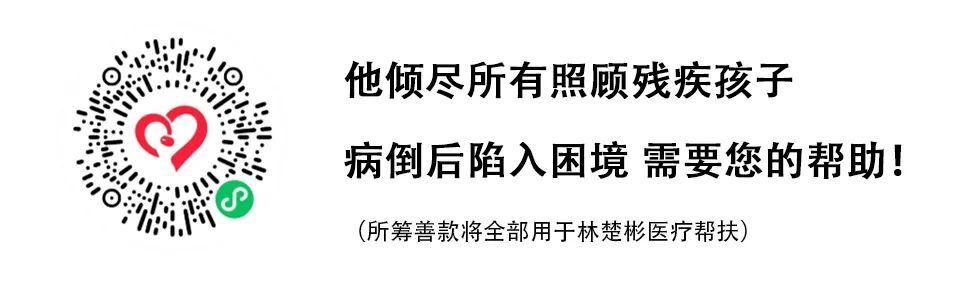 为两个孩子治病倾尽所有,即使处于逆境中,林楚彬也不忘为别人撑伞,力所能及帮助他人。如今他疾病缠身,医疗费和家庭生计让负债累累的家庭陷入困境。