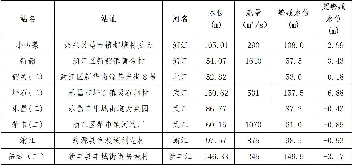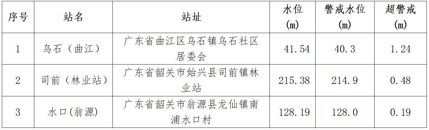 4月20日8时,有3个站点超警戒水位,站点水情: