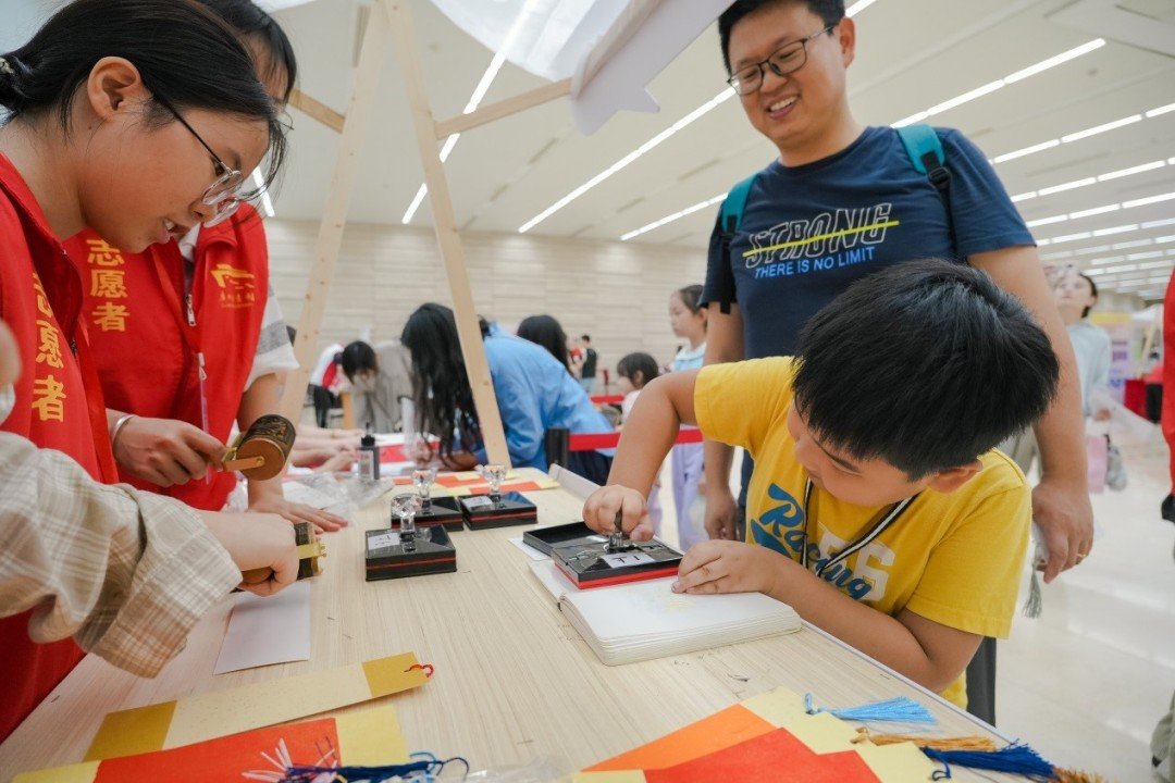 4月21日下午,虽然天气不好,但广州图书馆负一层热闹非凡。读者尤其小读者们热情非常高。原来这里正在举办读书月嘉年华活动,嘉年华以集市形式举办,包含 “诗词拓印”“影像中的阅读”“粤声同享”等9个阅读体验场景,活动从上午10时一直持续到下午5时,靠实力圈粉无数,