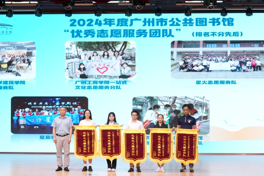 下午3时,2024年广州市公共图书馆发布会准时开始。发布会上,10名广州市公共图书馆“好读者”、10名 “好伙伴”、10名“优秀志愿者”、5个“优秀志愿者服务团队”获颁奖项。