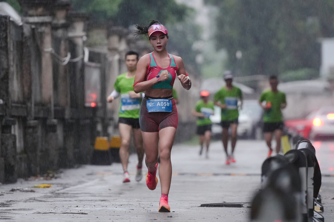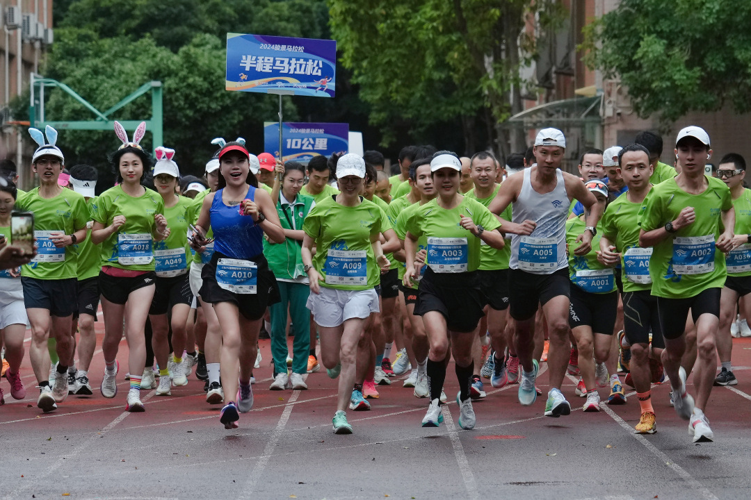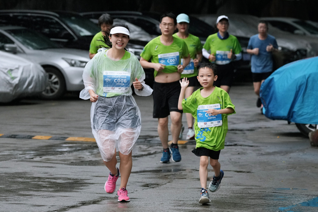 当天上午,虽然天下着雨,但是马拉松比赛现场热闹非凡。上午7点30分,随着发令枪响,选手们冲出起点。今年的马拉松比赛项目分为半程马拉松、10公里欢乐跑和6公里亲子跑,其中亲子跑是今年的新增项目。