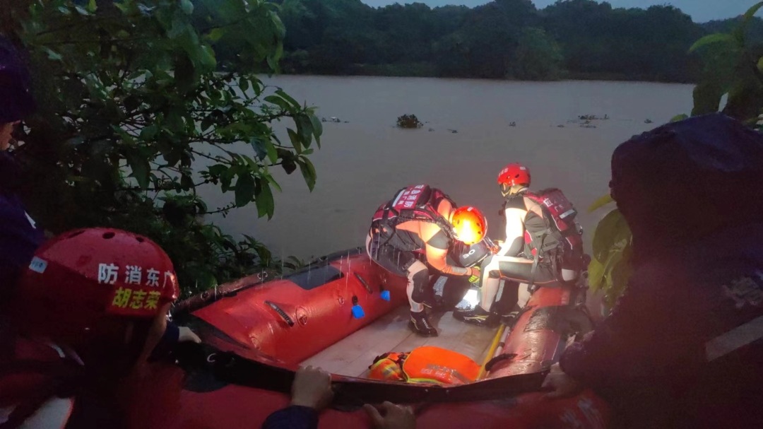 广州市消防救援支队4月21日通报,4月20日17时08分,广州市119指挥中心接到一通水域被困的报警电话,称有2名男子在增城区仙村镇潮山村河边水坝钓鱼,但因暴雨水位急剧上涨,导致2人被困,急需救援。接到报警后,增城区新塘消防救援站迅速出动前往现场救援。