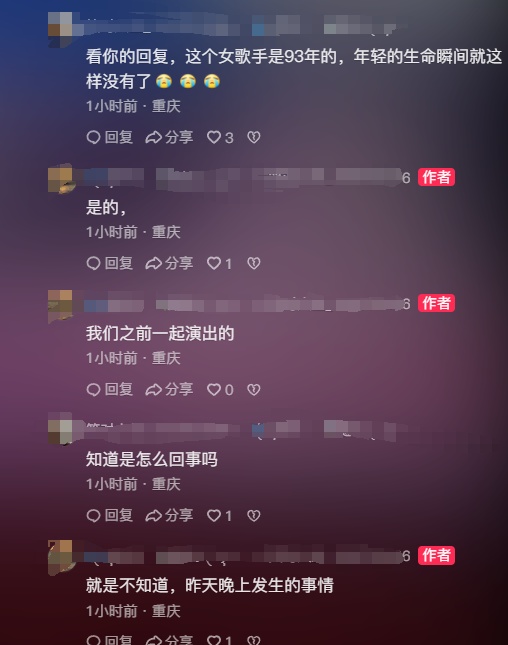网友还在评论区回复,该女歌手是90后,当时被送去医院但是没有抢救过来。