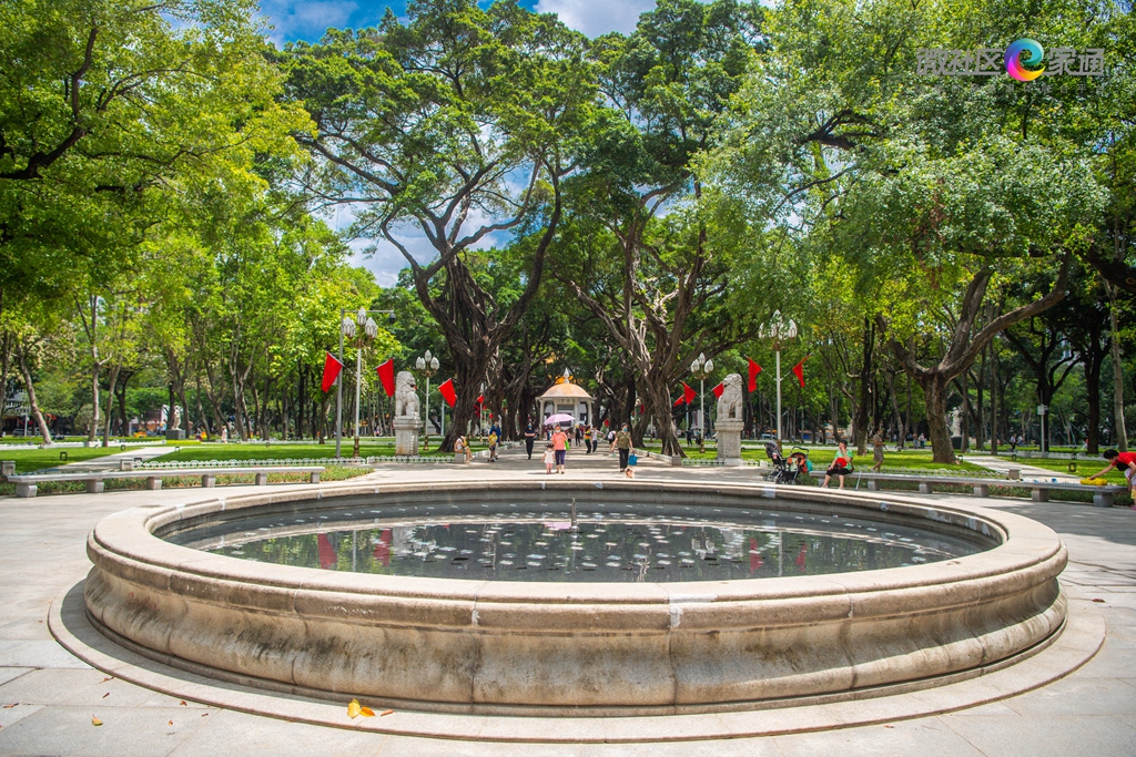 漫步其中,历史与现代的气息交织,脚下是青葱的野草,抬头是参天的古木,对称形式的庭院布局富有浓郁的地方特色。热烈的木棉、婀娜的苹婆、枝繁叶茂的黄葛、可爱的白腰文鸟……人民公园内拥有丰富的动植物,展现出生机蓬勃的姿态,在这幅人与自然和谐共生的绿美画卷中,人们总能感受到宁静的美好。