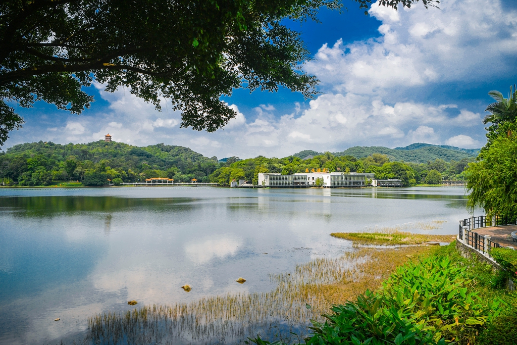 麓湖是广州市内四大人工湖之一,是以湖光山色著称的大型山水园林公园。聚芳园寻踪、鸿鹄楼登高远眺、白云仙馆寻幽访古、观鸟台探寻鸟类秘密……这里鸟语花香、空气清新,是闹市里的天然氧吧。春天,杜鹃花竞相绽放;夏天,睡莲恬静淡雅;秋天,异木棉粉若云霞;冬天,落羽杉换上“红装”……麓湖公园一年四季都是花海,为游客创造一个童话般的世界。
