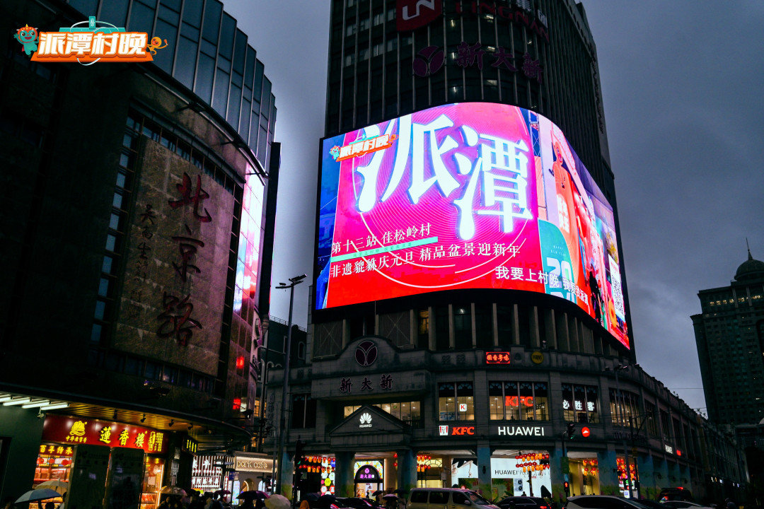 图:当晚,北京路新大新巨幕穿插滚动播放派潭“村晚”活动视频。