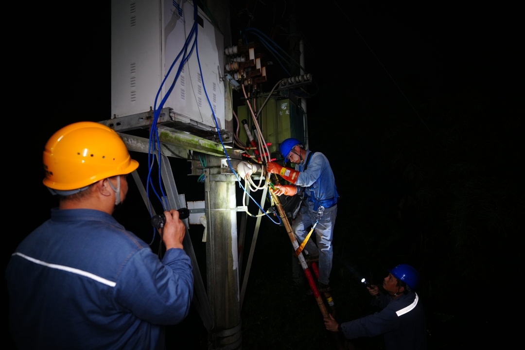“有电了!”随着满足复电条件的小区楼宇依次亮灯,居民们还在为复电欣喜,电力人员已经马不停蹄奔向下一个故障点。