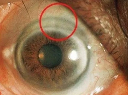 如果老年人照镜子时发现,黑眼珠与眼白交界的地方,有个像戒指一样灰白色的圈,不疼也不痒,要警惕角膜老年环。