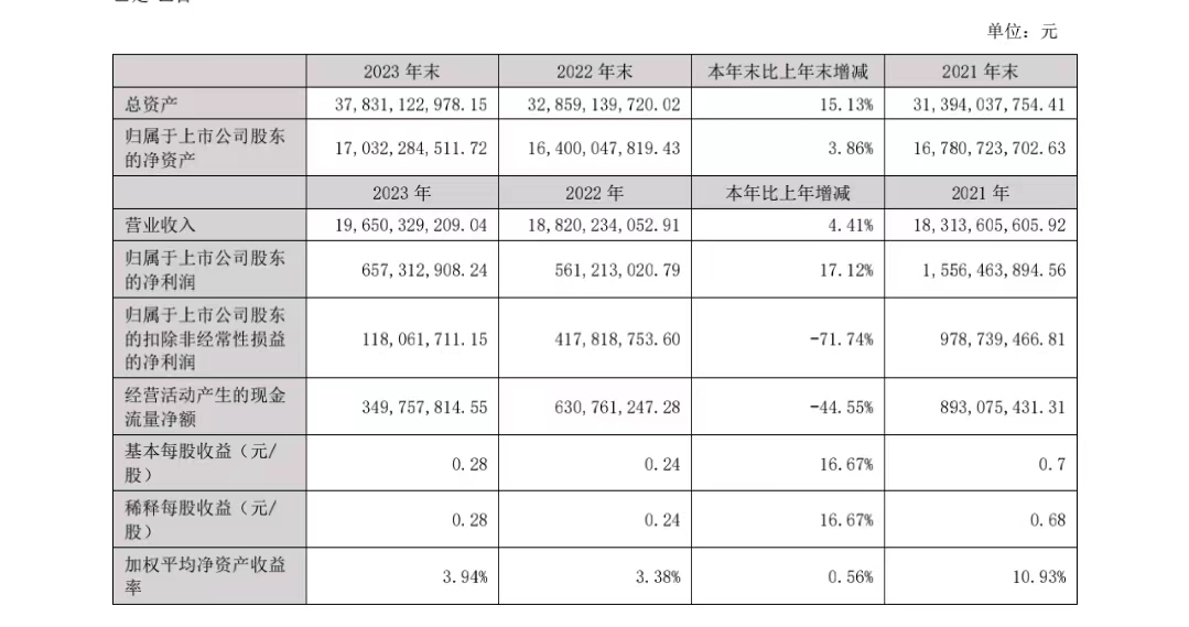 另一方面,主要影响因素还包括公司持股的三人行、寒武纪等金融资产在2023年第一季度取得投资收益1.34亿元,2024年一季度相对于去年同期投资收益减少1.23亿元。