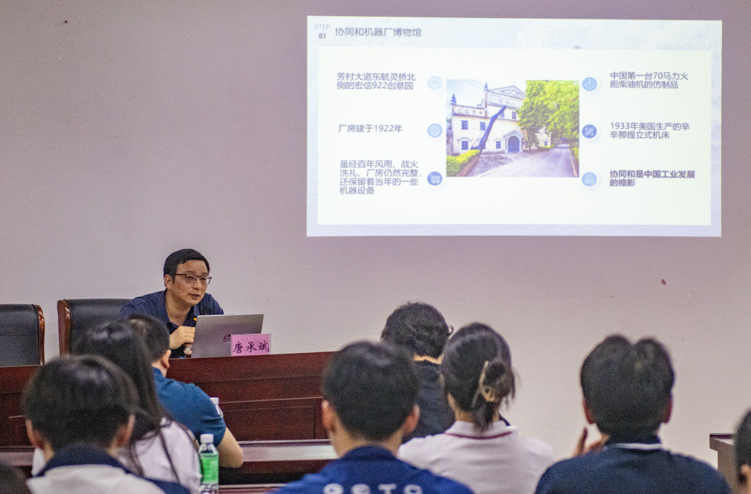 唐承斌用图文并茂的方式,引导听众跨越时空,回到协同和机器厂制造柴油机的作业现场。根据他的讲述,1911年,大冲口一家作坊式的米机厂开业,陈沛霖、陈拔廷、何渭文等股东秉承“协力同心,和衷共济”的宗旨,给工厂起名“协同和”。刚开始,协同和的主营业务是碾米,后来扩展到维修、改造米机。他们当时研发的“米磨二号”米机,以超越洋货的质量打破美国和德国在中国市场的垄断地位,迅速风靡业界。其后,协同和把主营业务改为机器修造,变为机器厂。1915年,协同和成功仿制出中国第一台柴油机。从此,协同和正式介入柴油机生产领域,扛起中国近代民族工业的一面大旗。协同和的产品质量特别好,获得了机器行业“华南第一家”的美誉。