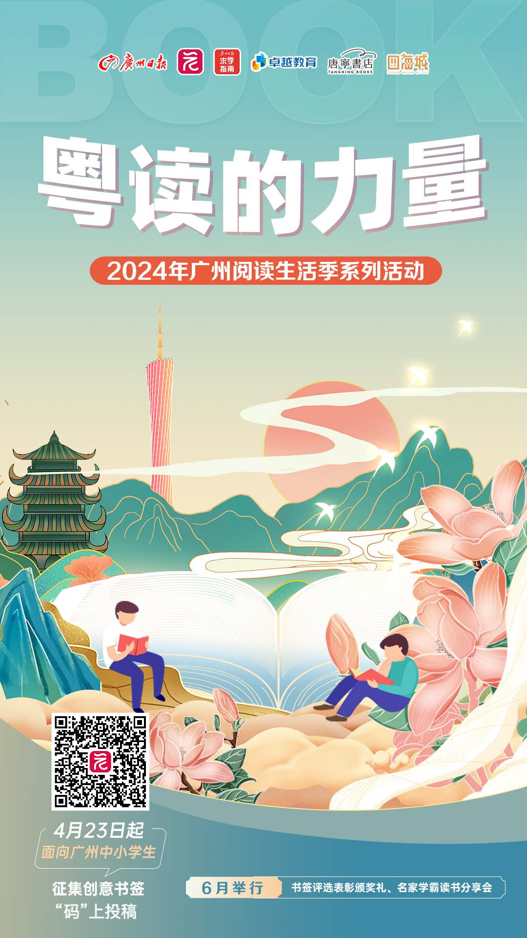后期活动包含:6月中旬举办“粤读的力量”书签设计大赛颁奖礼暨读书分享会,设置书香创意市集与树上图书馆,以富有创意、更多年轻人喜闻乐见的形式推广阅读,让阅读成为每个人终身成长的力量。
