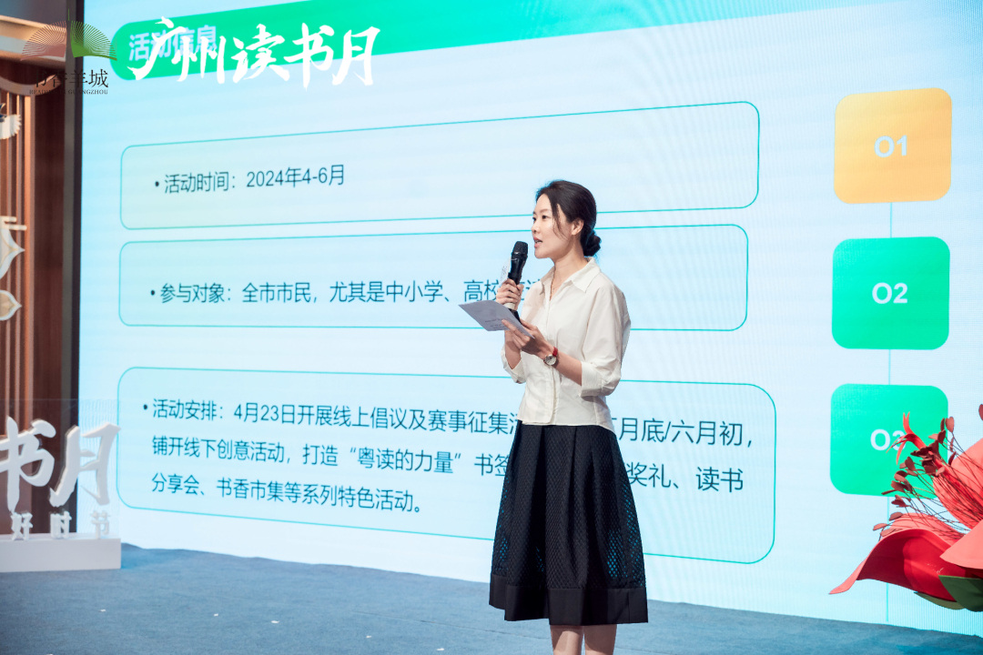 4月23日,“穗阅静好”2024广州读书月主题活动在广州购书中心(天河店)举行。活动上,广州日报求学指南工作室(以下简称“广报求学”)总监刘晓星登台介绍了工作室举办的“粤读的力量——2024广州阅读生活季系列活动”,正式宣布“粤读的力量”这一品牌公益活动如约而至。