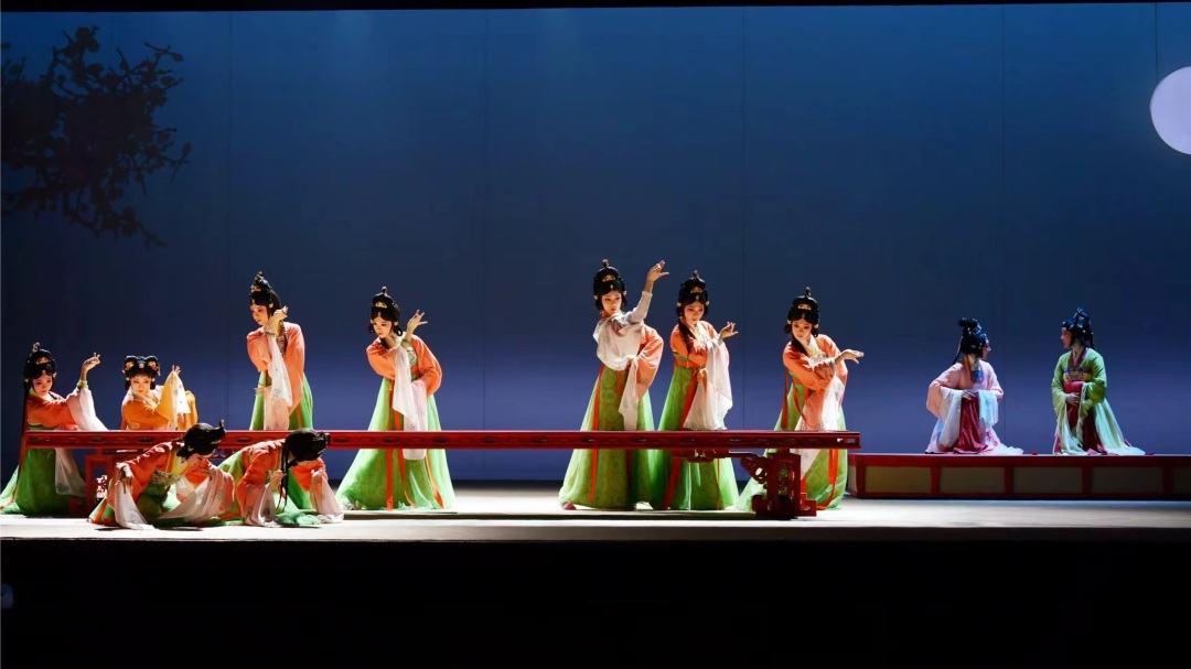 《双绣缘》舞美精致,让人仿佛置身于唐代名画《捣练图》之中,实现了一次跨越时空的美学对话。