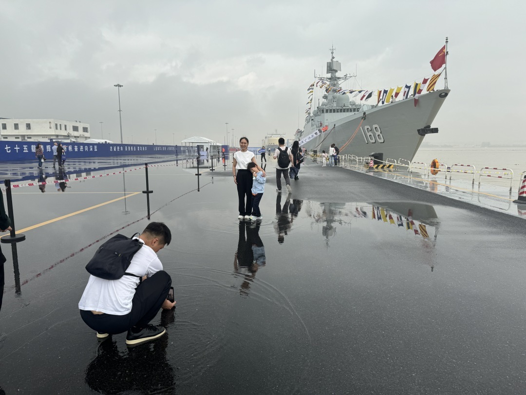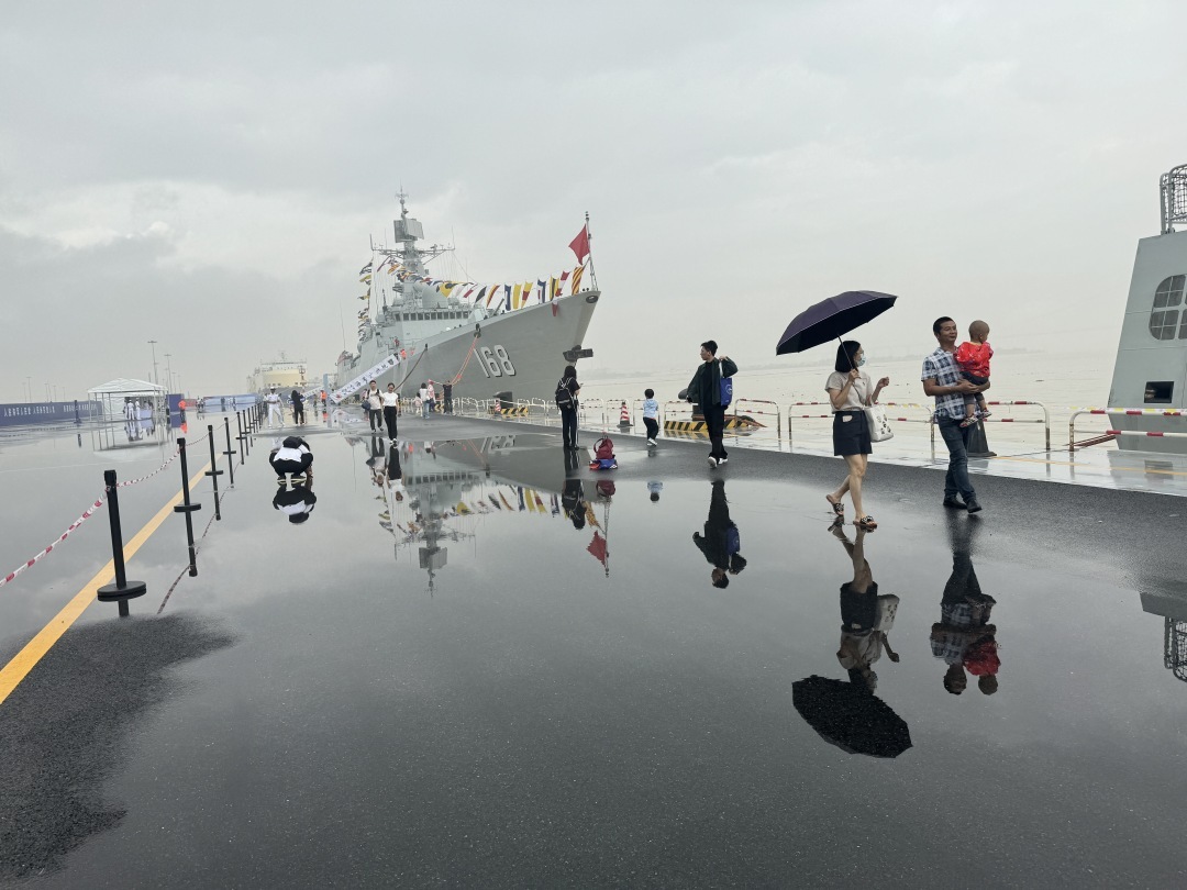 “今天终于圆了‘登舰梦’!”身穿海魂衫的郭先生激动地说道。“我2017年从海军退役,回到学校完成学业。因为是陆勤兵,我服役期间从没上过军舰。”此次得知海军节广州有舰艇开放活动,他便一直关注“南海舰队”微信公众号,终于在4月20日预约成功。“早上从东莞打车过来,路上雨很大,开了一个多小时,但为了圆梦,值了!”