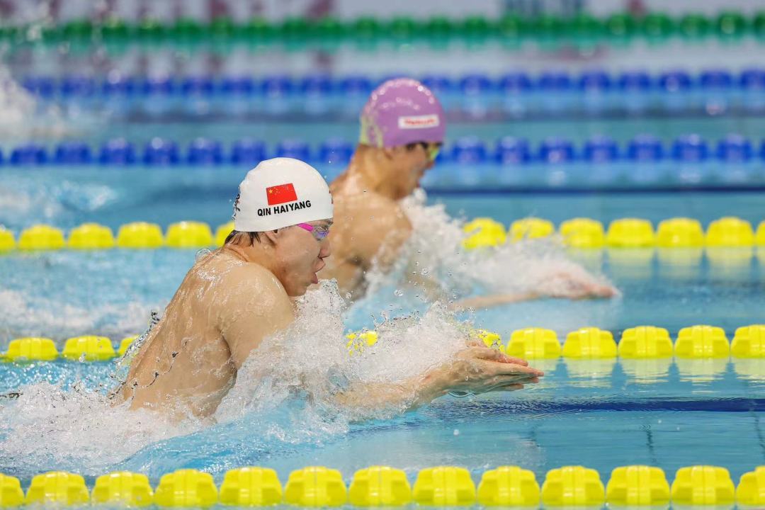 其他比赛,退出了100米自由泳决赛争夺的张雨霏在女子200米蝶泳半决赛中以2分07.50秒排名首位,从目前的情况看,在巴黎奥运会上,张雨霏为了确保蝶泳以及接力项目的精力,应该已放弃参加100米、200米自由泳的单项比赛。男子200米蛙泳决赛,近两届世锦赛该项目的冠军邻道对决,最终还是覃海洋以2分08.87秒夺冠,但这个成绩距离他个人保持的世界纪录还有超过3秒的距离。赛后,董志豪表示巴黎奥运会将全力备战200米蛙的比赛,而覃海洋再次强调本次比赛没有成绩要求,只是以赛代练,会按照去年备战福冈世锦赛的节奏去备战巴黎奥运会,目标是100米、200米蛙泳两个单项以及接力,也非常高兴在两个单项上都有队友跟自己并肩作战,孙佳俊和董志豪都是非常有实力的选手。