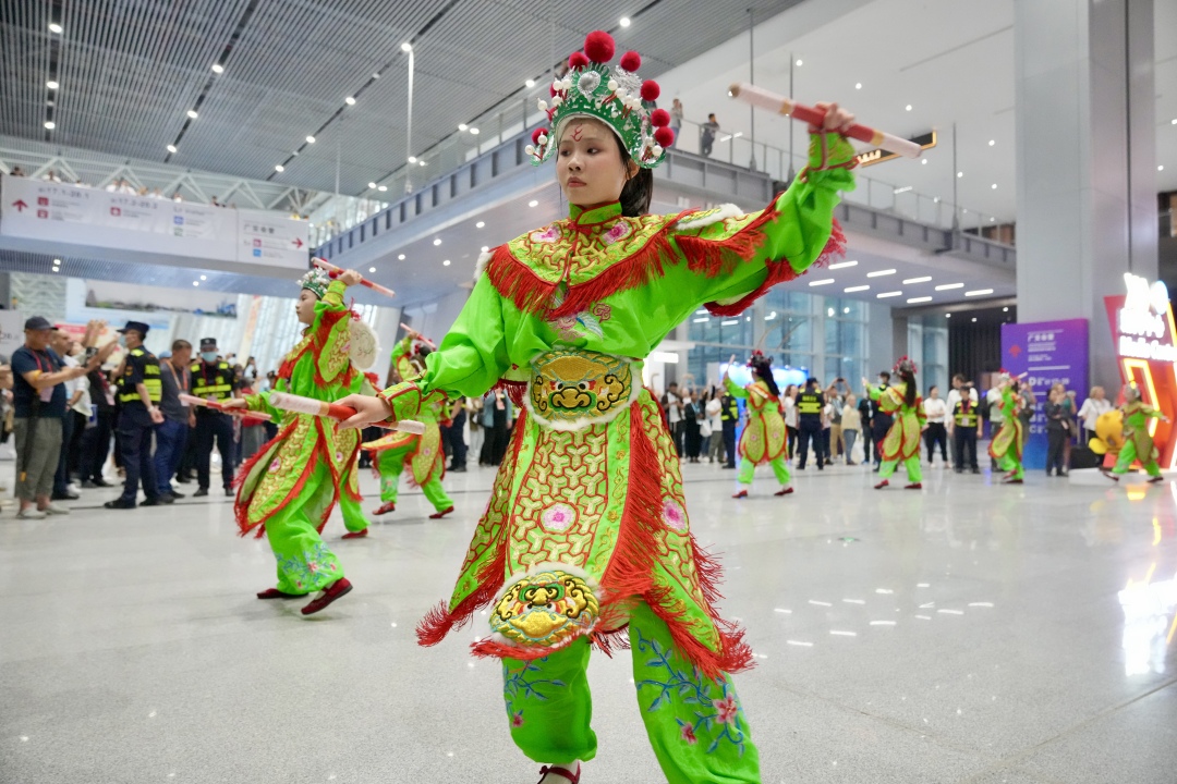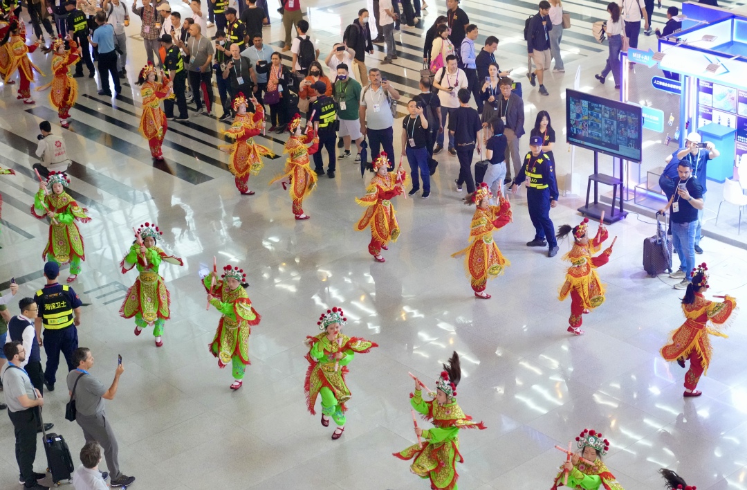 开幕现场,女子英歌舞队、醒狮等展演精彩亮相。