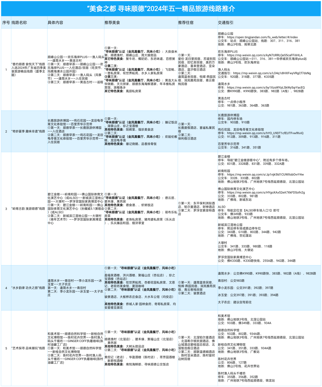 记者了解到,这五条线路分别是:“香约顺德 食悦天下”,“奇妙夏季 趣味非遗”,“岭南古韵 漫游顺德”,“水乡韵律 功夫之旅”,“艺术探寻 品味潮玩”线路。