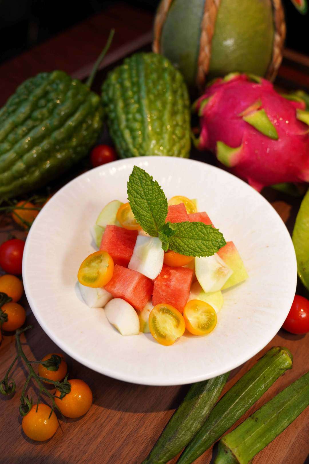 凉瓜渐渐入季,马师傅自然不错过它。取杜远凉瓜,去囊取瓜青,与手工鱼线共捞。鱼线为自家制,以水库鲮鱼刮鱼青后,打成鱼茸制鱼线,每日新鲜制作,放不得过夜,否则鱼线口感一落千丈。在天人山水度假区湿地花海中心的乐佸餐厅里,这些从化本地特色美食将在五一“登场”。