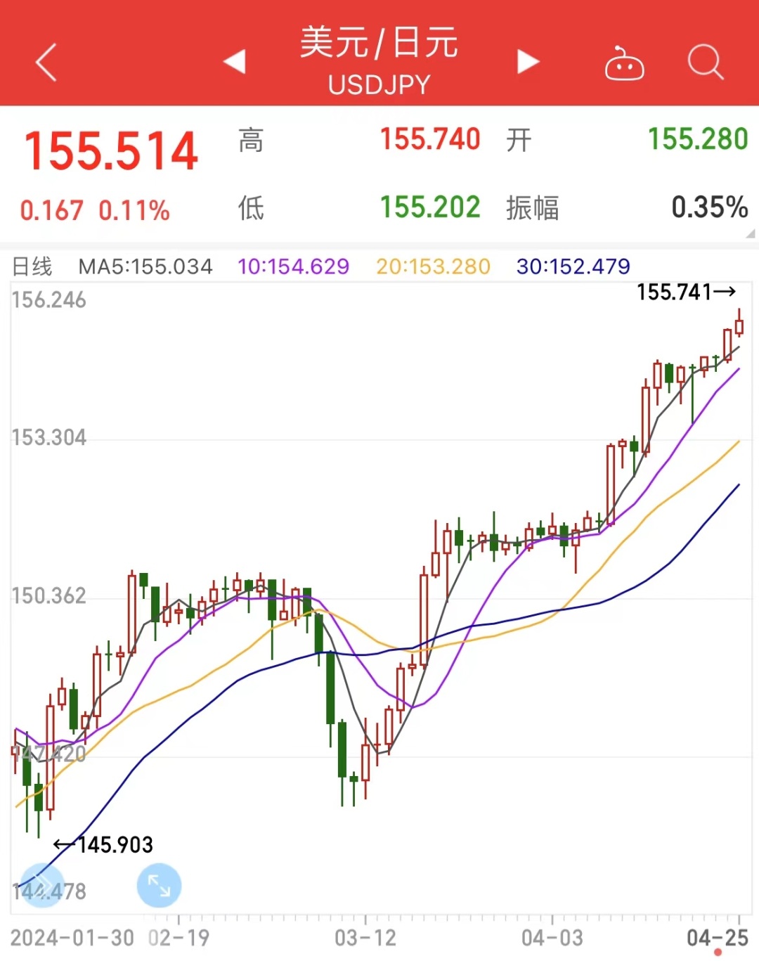 近两个交易日,日元对美元持续贬值,突破155关键点位,创下34年来的新低。在日元走低之际,记者留意到,市场上也掀起了“囤日元”的热潮。