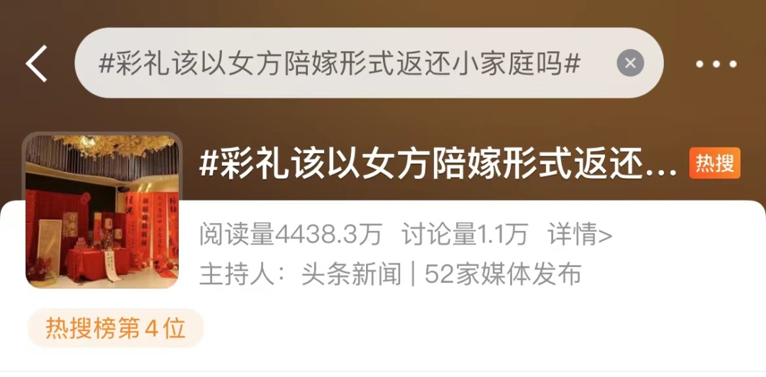 #彩礼该以女方陪嫁形式返还小家庭吗#话题