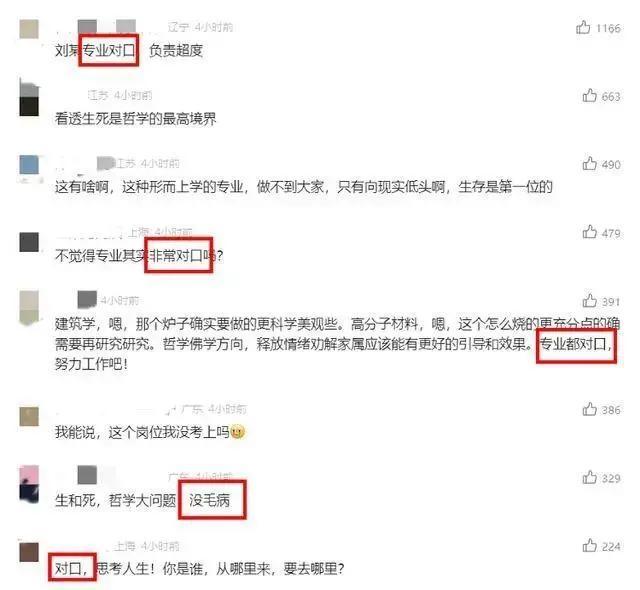 有网友表示哲学硕士做遗体火化工属于“专业对口”,“看透生死是哲学的最高境界”“生和死,哲学大问题,没毛病”。