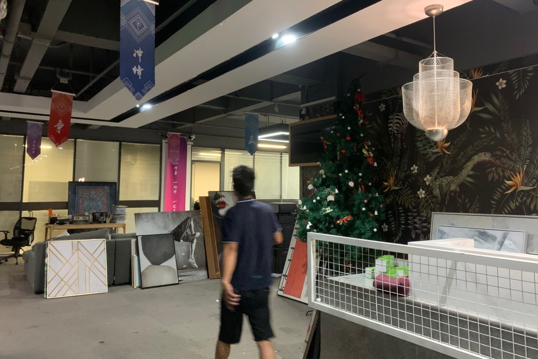 在办公区内部,记者看到现场已是狼藉一片。该名员工笑称,自己和公司负责人、几名同事一起连日来都是“付费上班(公司不发工资自己来上班)”。“主要工作是清点一下资产,看看哪些是可以处理不要的。”据悉,在优梵艺术的团队解散后,公司办公地的租期也面临到期不续的情况,因此公司需要进行及时的“清场”。