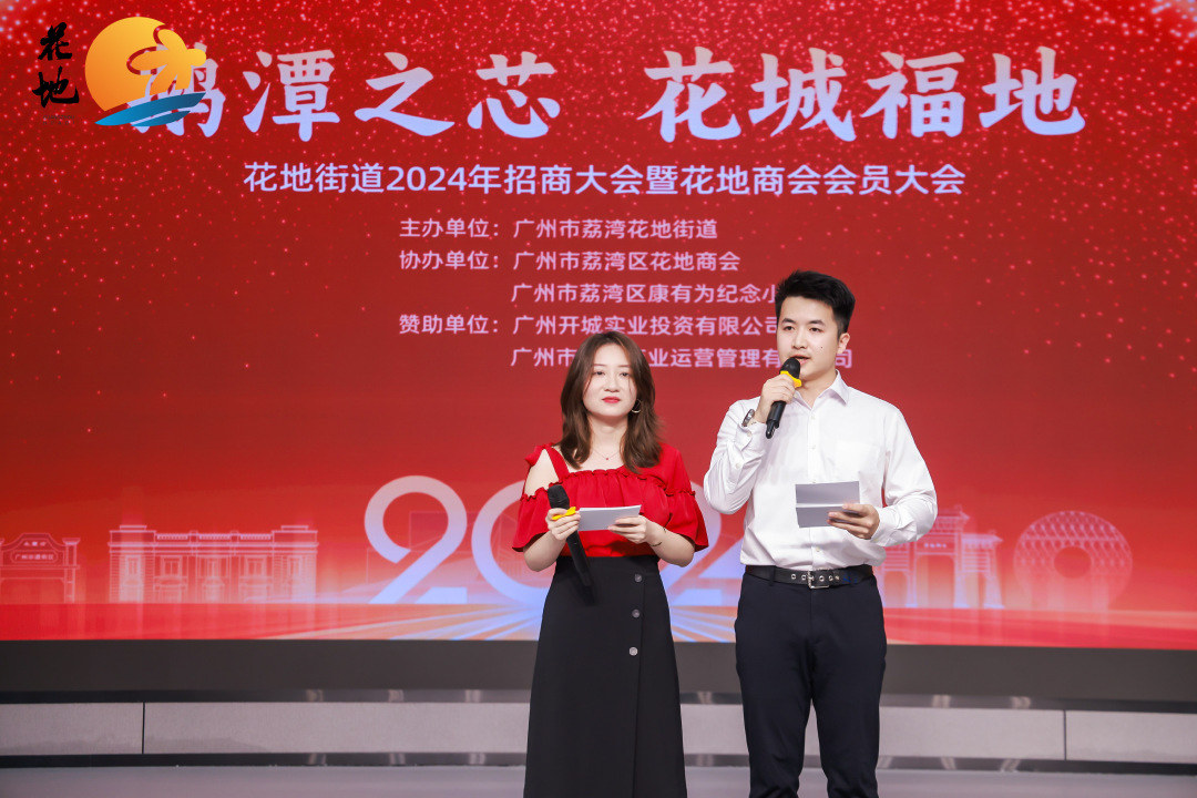 4月26日,广州荔湾区花地街道在康有为纪念小学报告厅举办以“鹅潭之芯花城福地”为主题的2024年花地街道招商大会暨花地商会会员大会。