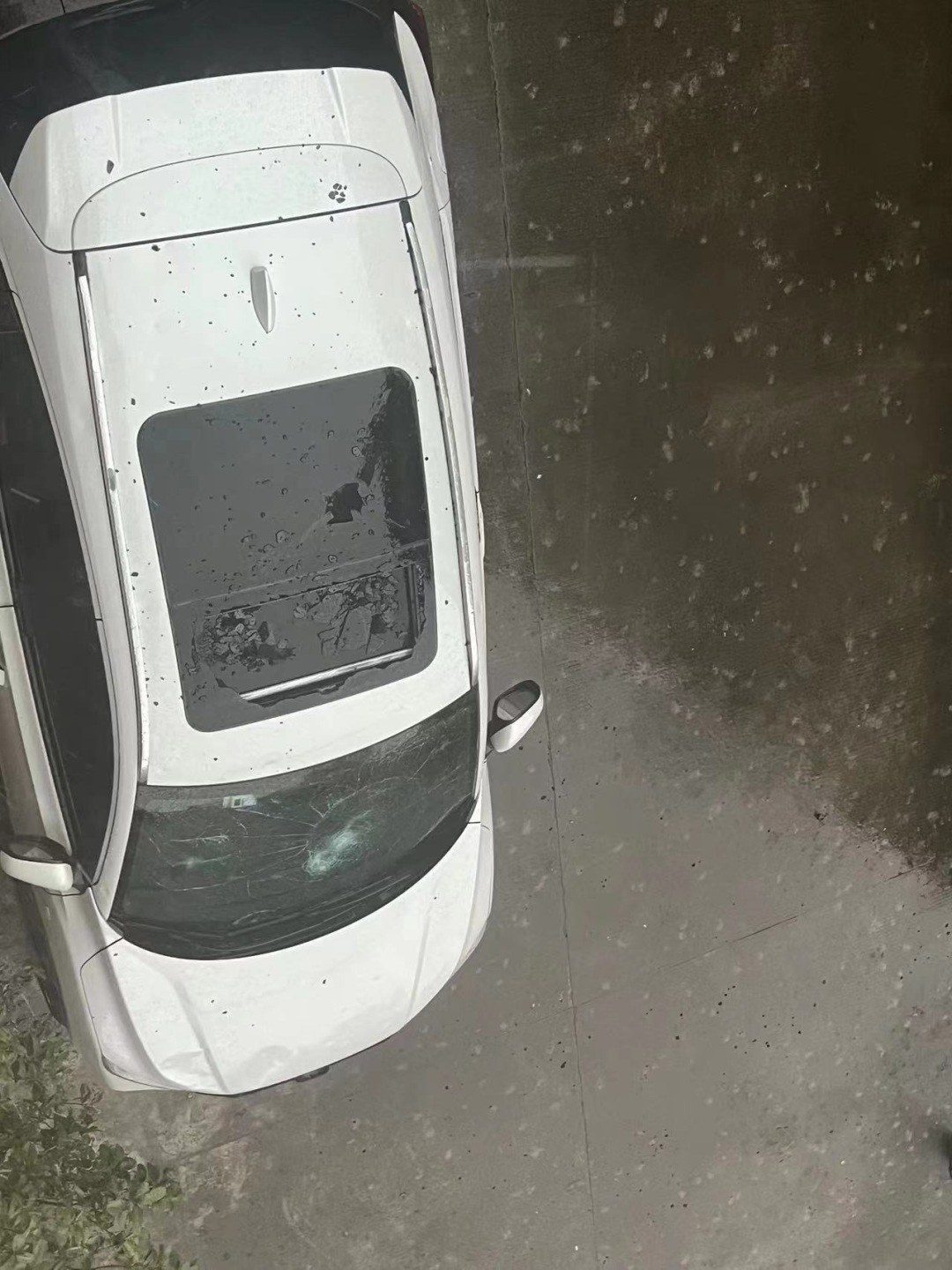 “天一下子就黑了,然后就下起了鸡蛋大小的冰雹,持续了三分钟左右。”家住增城区朱村街朱宁路附近的小林在电话中向记者回忆道,4月27日15时30分左右,冰雹从天而降,自家停在楼下的两辆汽车玻璃受损严重,“前风挡和天窗全都被冰雹砸裂了。”
