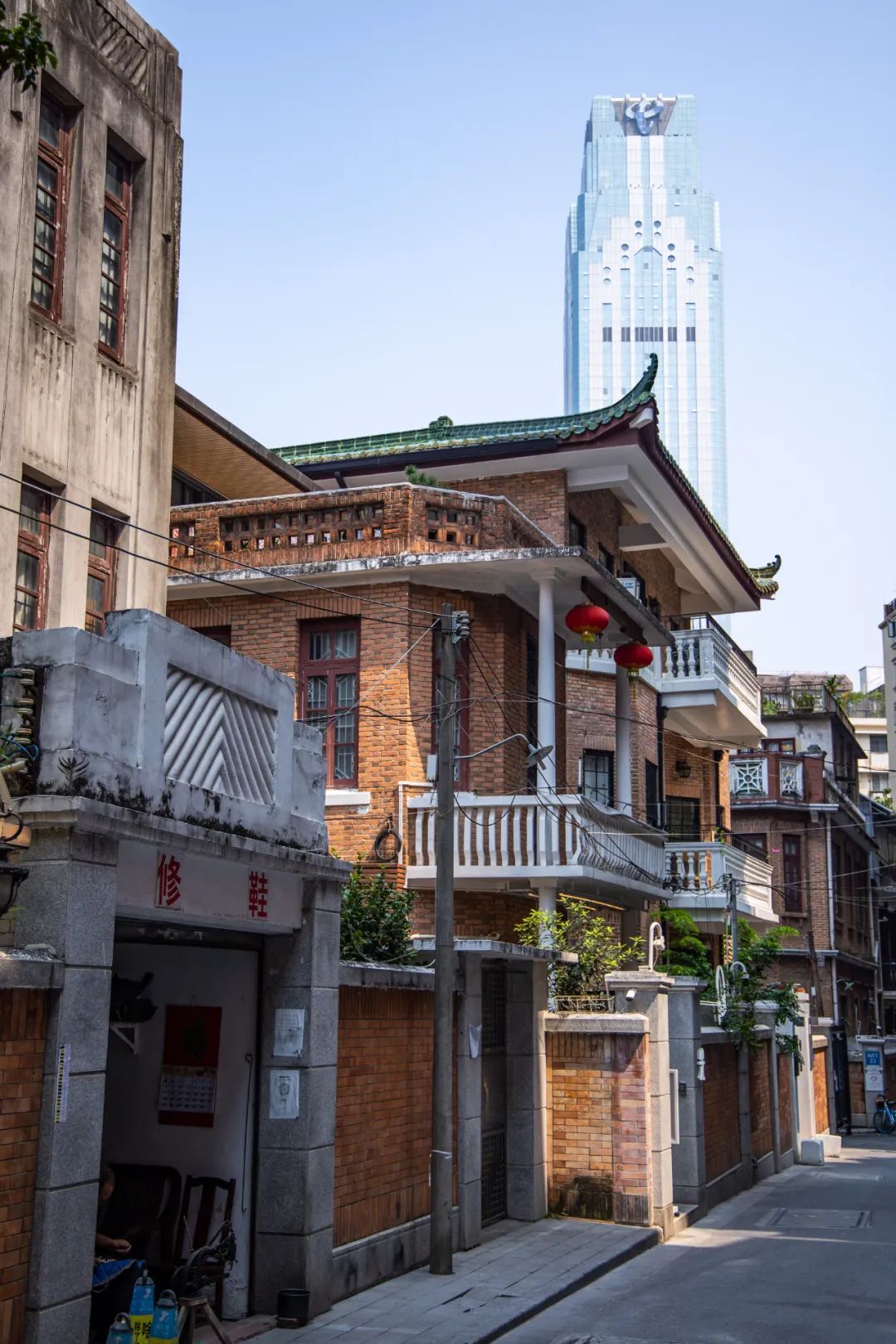在这里,你很容易就看见大道两旁古树参天,林荫遮道,各式洋房映入眼帘:红砖砌筑的尖顶楼阁、象牙白的大柱子、悠长的圆柱走廊......看得人眼花缭乱,应接不暇。