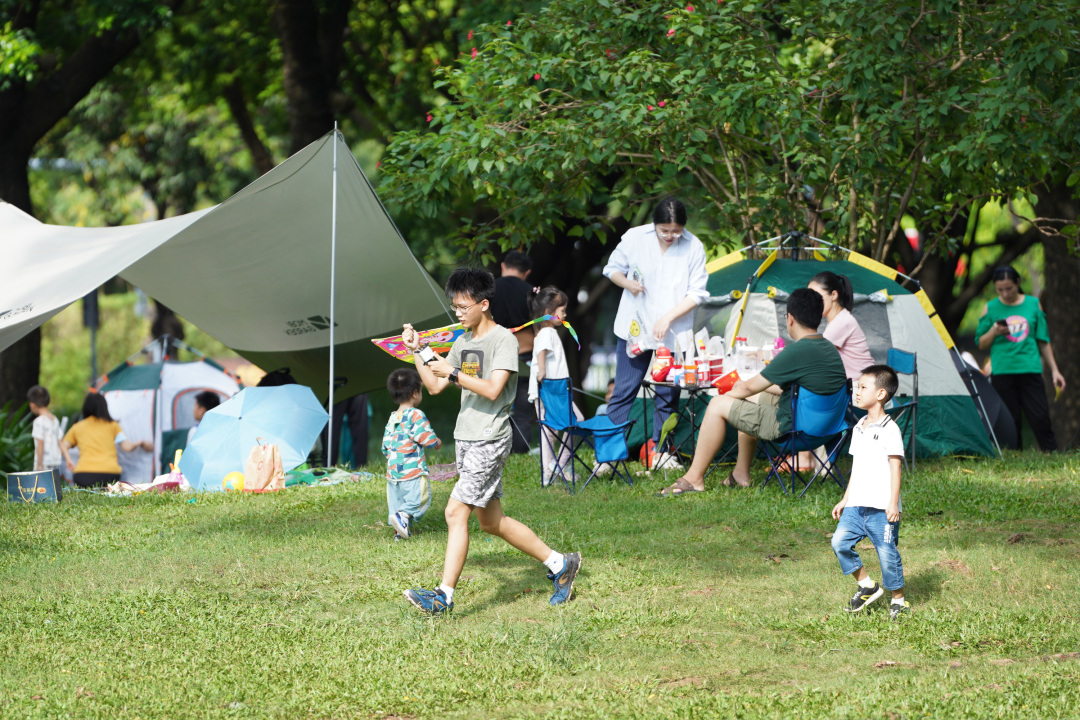 市民和游客在二沙岛野餐 图/广州日报新花城记者 莫伟浓